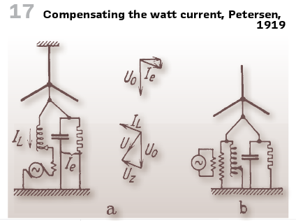 And it was Petersen of AEG who showed the first proposal to compensate the watt current with a series coil in 1919 (Figure 17.) This happened: