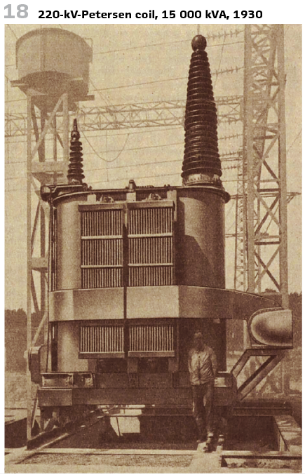 Years of research into the causes of the observed overvoltages led Petersen to invent the ground fault suppression coil. When investigating the effect of ohmic resistances between the generator or transformer neutral point and earth, the calculated results of the influence of stray inductances showed that these reduced the fault current flowing through the partial capacitances of the conductors. This surprising result of the compensation effect led Petersen to his successful idea. He himself writes: “From this realization to the discovery of the earth fault coil was only a small step.