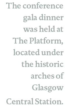 The conference gala dinner was held at The Platform, located under the historic arches of Glasgow Central Station, combining the station’s rich history with modern elegance.
