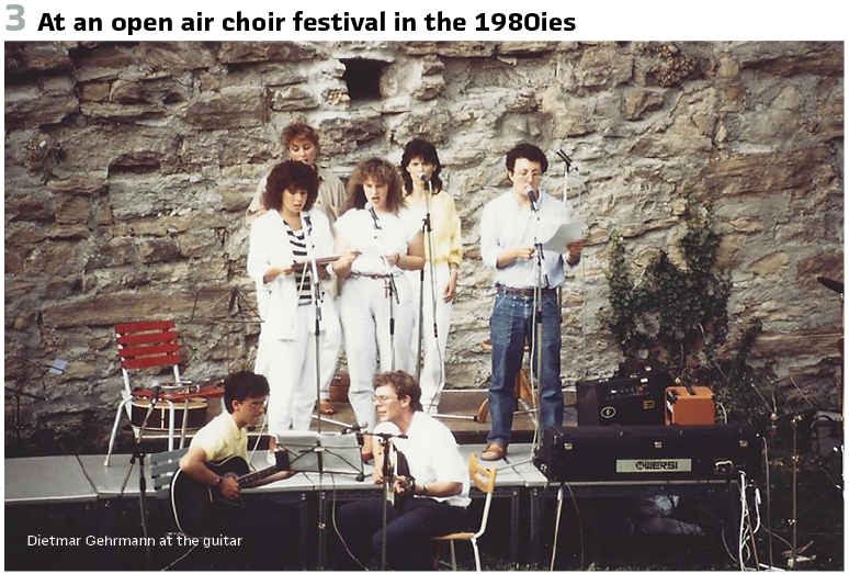 Singing only came back into my life when a friend of mine founded a youth choir in 1982, in which I was part of it from the beginning. We started as a small group of 6 singers and had a lot of fun singing together accompanied by a guitar. We started by musically arranging youth masses and bringing new momentum into the churches with our rhythmic songs. Soon we were also musically involved in the church festivals such as Christmas and Easter in our home church and sang at numerous weddings and baptisms.
