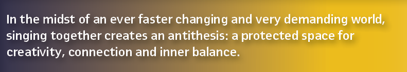 In the midst of an ever faster changing and very demanding world, singing together creates an antithesis: a protected space for creativity, connection and inner balance.