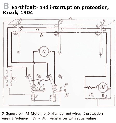 On 8 February 1904, Frantisek Kizik, Prague, presented a protective device for detecting earth faults and interruptions at the meeting of the committee for the founding of the “Austrian Association of Electricity Companies” (Figure 8).