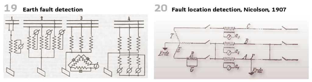 The story of Rühle deserves mention here. While still employed at the Rheinfelden (Germany) power plant before the First World War, he would walk the power lines with a dog, and when the dog barked, he knew he had found the ground fault location. Animals are more sensitive to electrical voltages than humans due to their four-legged nature. It is also known from the low-voltage local grid that horse-drawn carriages would break down while galloping due to an insulator defect. Simple ground fault indicator relays were required to detect ground faults.