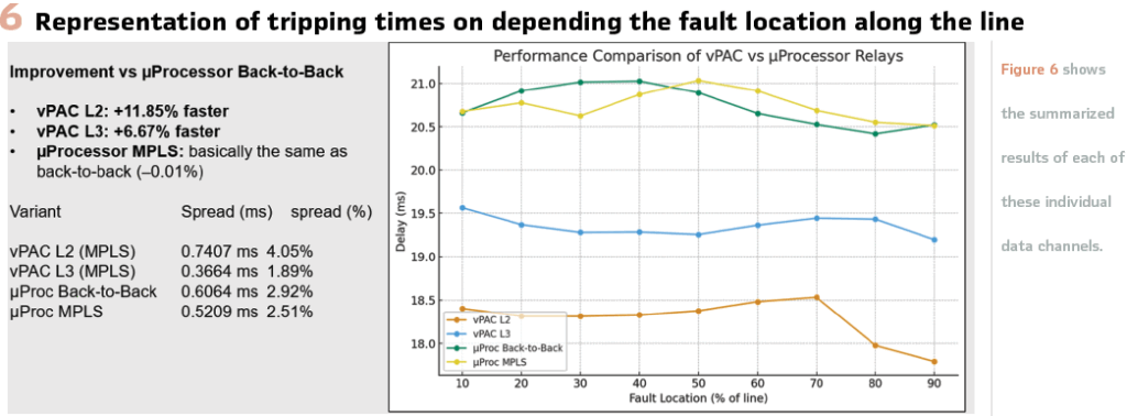 Across a wide range of fault types, locations, and communication scenarios, the vPAC architecture consistently outperformed traditional microprocessor-based relays in round-trip response time, with lower variance and high stability over prolonged testing periods. These findings validate the viability of centralized and virtualized protection architectures in real-world utility environments and support the broader adoption of vPAC for critical protection schemes.