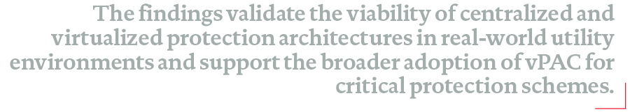 The results of the accelerated stress testing conducted in the Salt River Project (SRP) Technology Innovation laboratory confirm that the SSC600-based virtual protection system (vPAC) delivers reliable and consistent performance for line differential (87L) protection applications.